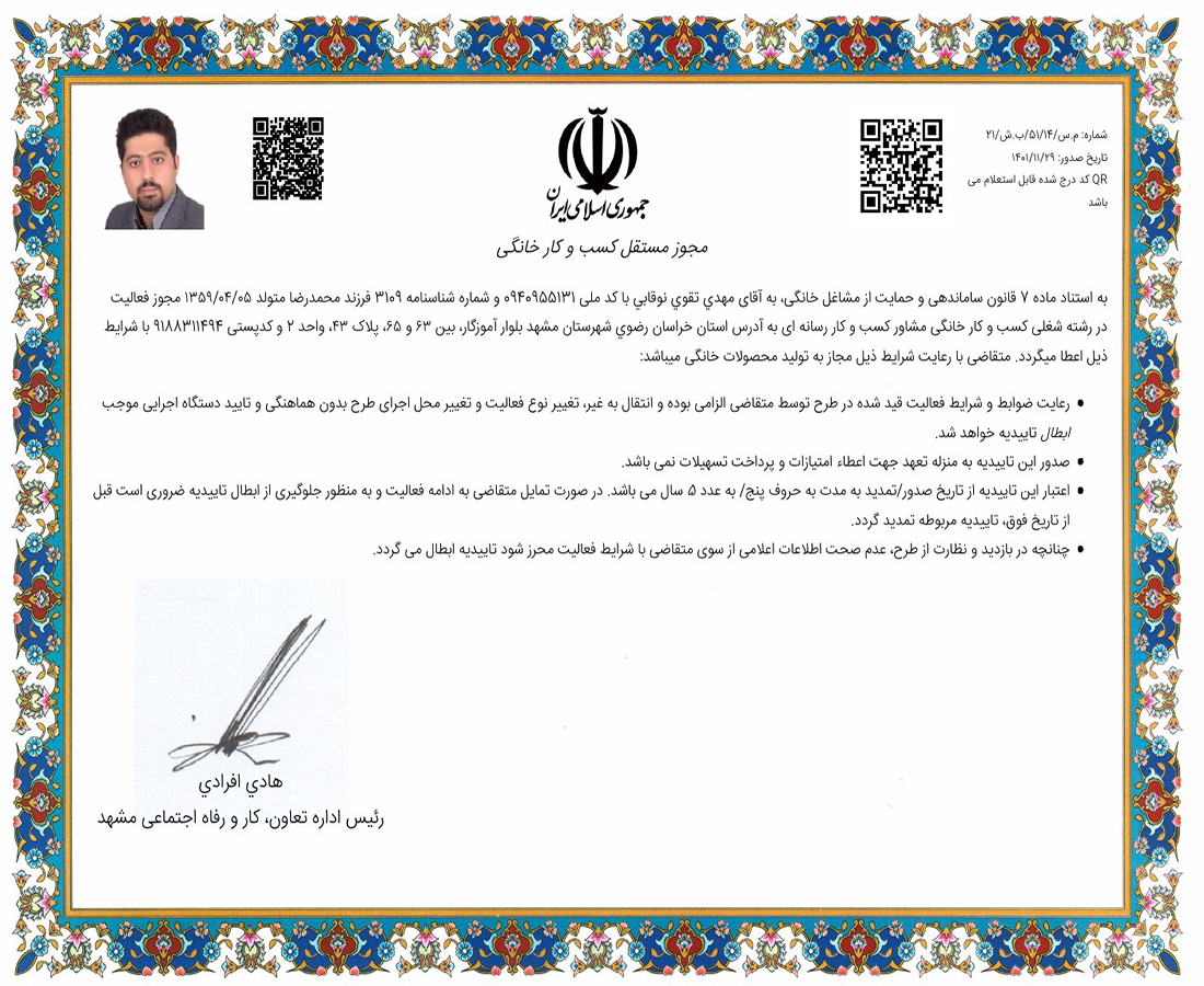 - تهیه و ارائه طرح توجیهی و بیزینس پلن برای ارائه به ارگانهای مجوز دهنده همچون وزارت صنعت، معدن، تجارت، جهاد کشاورزی و میراث فرهنگی، گردشگری، صنایع دستی