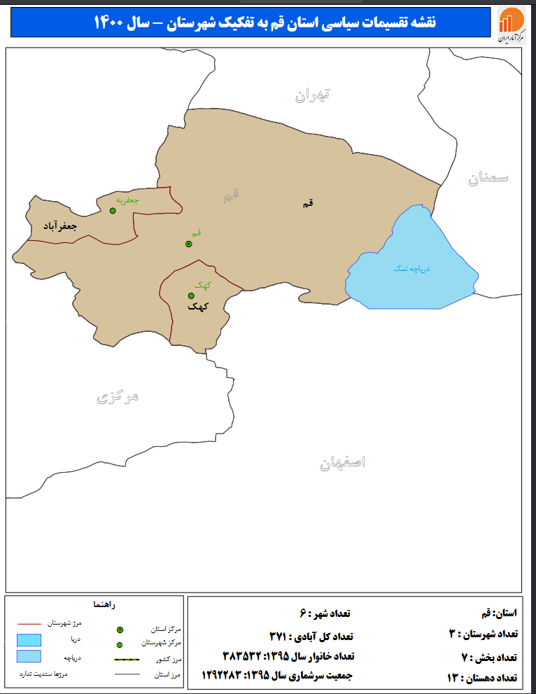 مشخصات شهرستان های استان قم