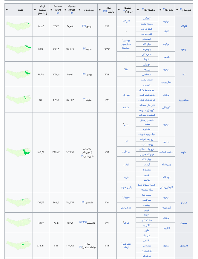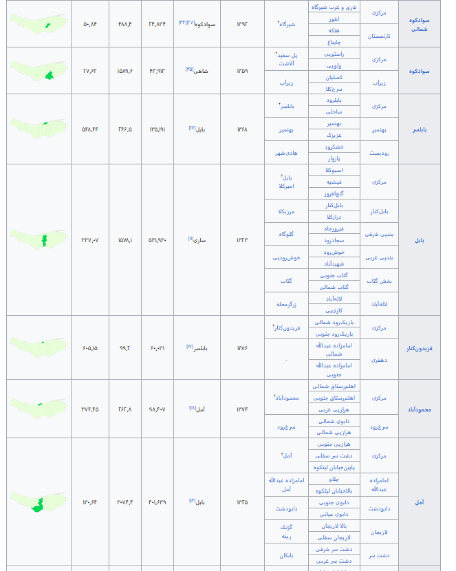 مشخصات شهرستان های استان مازندران
