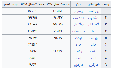 مشخصات شهرستانهای استان کهکیلویه وبویر احمد